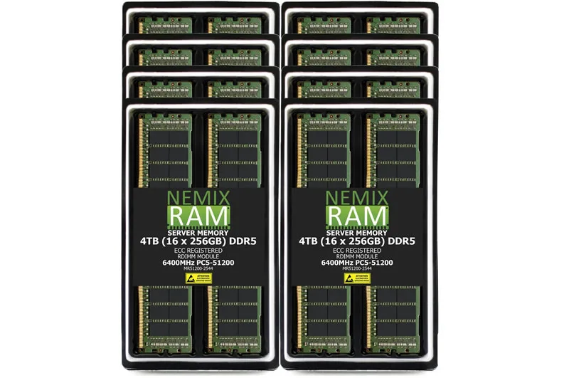 Nemix представила набор из 16 модулей ECC RDIMM DDR5 общей емкостью 4 Тбайт. Каждый модуль работает на частоте 6400 МТ/с с CAS-латентностью 52 и потребляет всего 1,1 В напряжения. Это решение предназначено для самых требовательных задач, где критически важны как объем памяти, так и ее надежность.